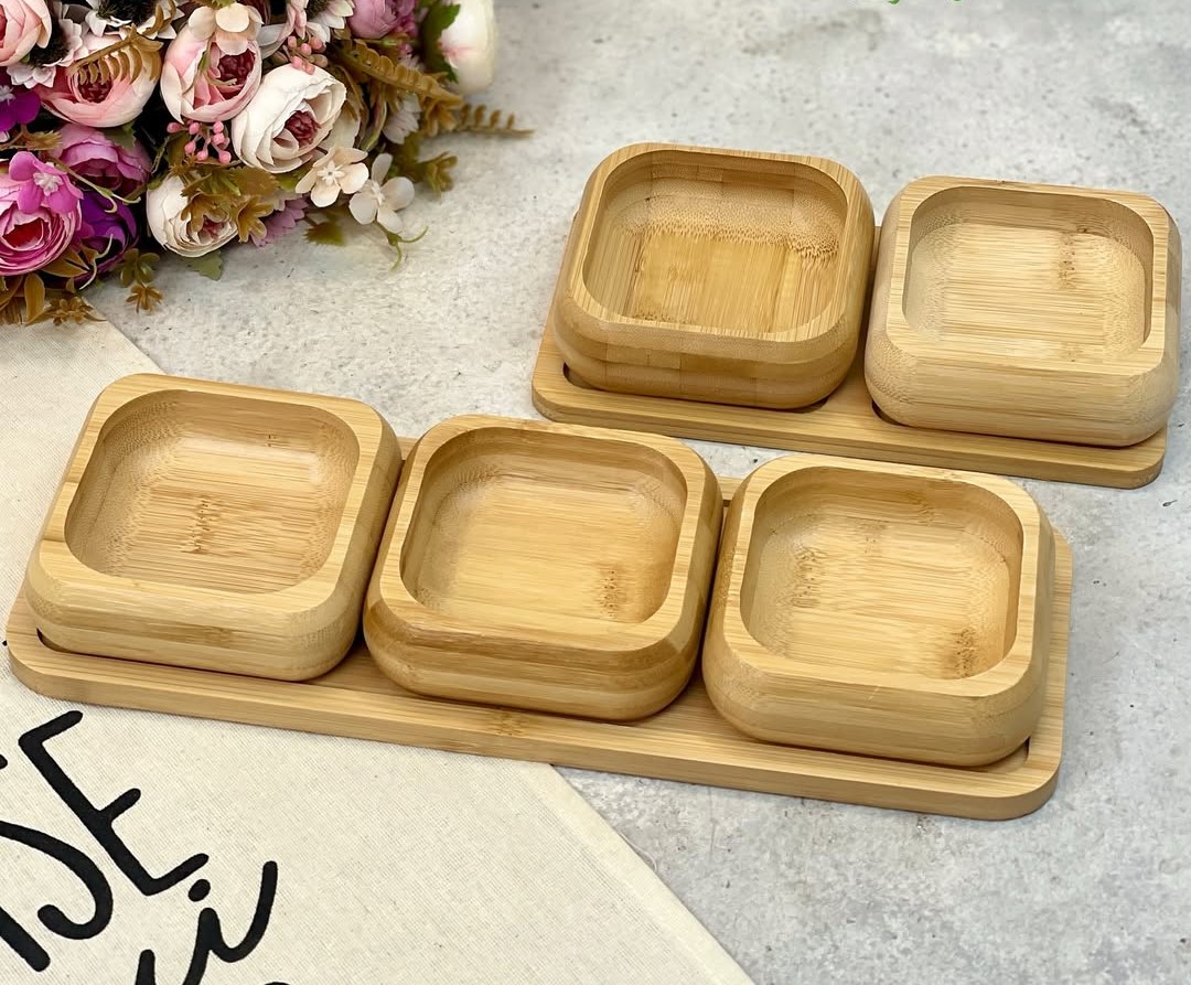 ناموجودبشقاب کاسه ارائه بامبو 3 سینی مربع